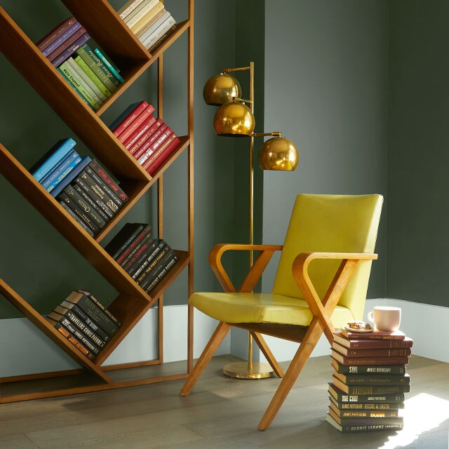 Si les murs de votre pièce sont de couleur neutre, songez à peinturer le plafond, ou le « cinquième mur » comme on l’appelle souvent, dans une teinte saturée pour rehausser votre espace d’un brin d’éclat et d’une touche de couleur ludique. Pour ce faire, pensez à Valériane CC-66, à Grotte Marine CC-964 ou à Mine de Plomb 1603.